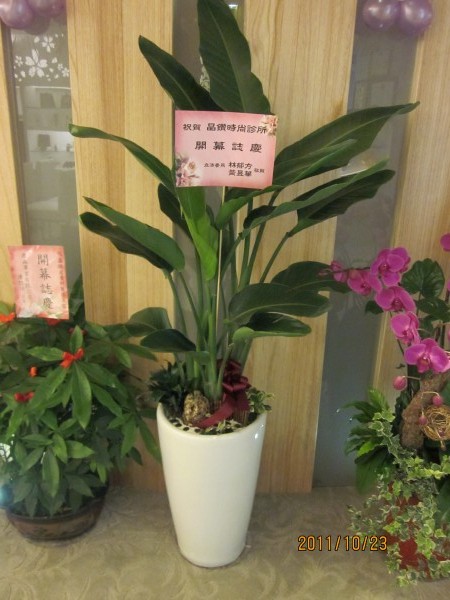 天堂鳥組合式盆栽 規格說明:150*40CM 備註說明 : 全省宅配 ~本產品標價含運費 *台北縣市區與大台北區專人配送.。 每筆訂單僅提供單次送貨服務,如收件人不在、無人簽收,或收件人拒收,該商品仍視為完成,12 小時內可轉送其他地方,但須酌收200元手續費。 *備註 圖片僅供參考,鮮花、植物、盆器…有可能因天候及到貨因素影響而無法取得。我們保證將以同等級素材取代,且絕對是最佳品質。 *商店退換貨說明 若因運送導致商品受損,請務必於貨品送達24小時之內來電 TEL:02-2232-6616 告知,以便為您安排替換。