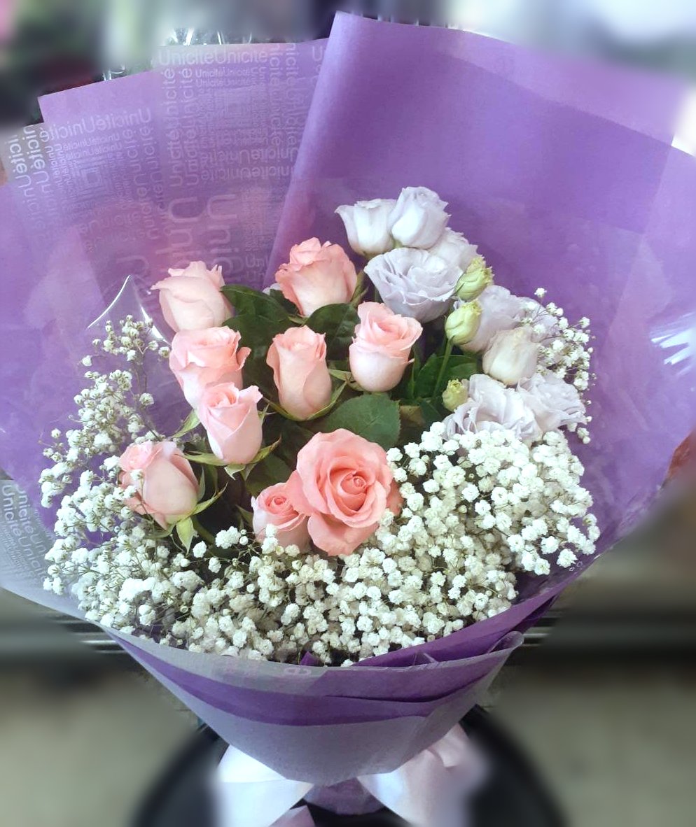 內容如圖 :玫瑰11朵+桔梗+滿天星葉材等花束